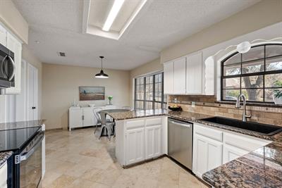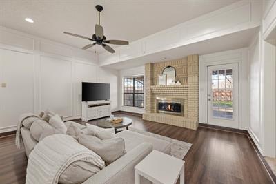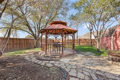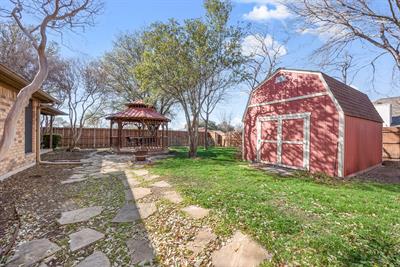 Come check out this gorgeous home in NRH! Large backyard features mature trees and charming gazebo perfect for entertaining! Welcoming you home is a front porch practically made for sipping morning coffee. A bright entry way opens up to a cozy living room with beautiful wainscoting details and wood-burning fireplace. The bay window in the eat-in kitchen provides an abundance of natural light. Split floorplan allows extra privacy for the primary bedroom. Primary bath features double vanity and separate tub and shower. Additional bedrooms and a full bath complete this ideal floorplan. The backyard boasts privacy fence, covered patio, gazebo, large shed and tons of shade, just right for Texas summers!