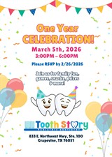 This celebration is our way of saying thank you for trusting us with your children’s smiles and for being part of the Tooth Story family. Whether you’ve been with us from day one or are just getting to know us, we can’t wait to celebrate together!
